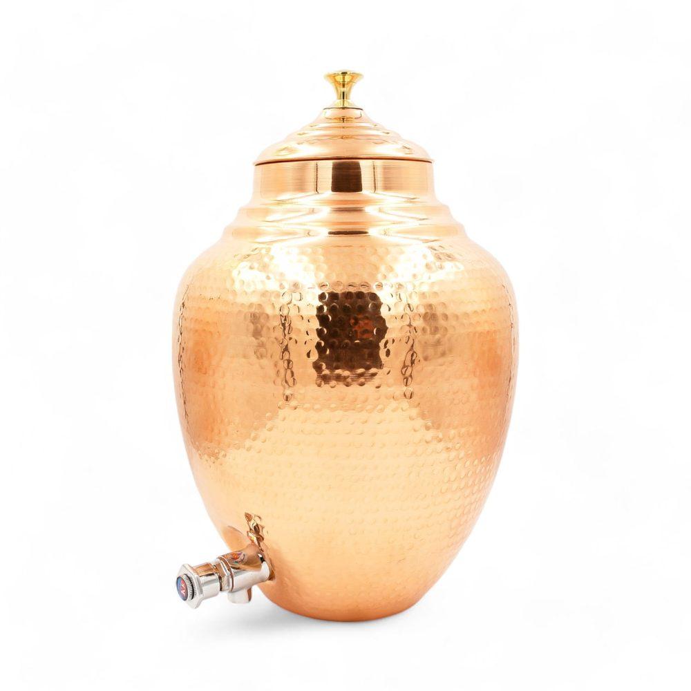 Der Kupfer-Wasserspender „Gigant“ ist das größte Gefäß unserer Kollektion, entworfen für Menschen, die einen ständigen Zugang zu großen Mengen vitalstoffreichem Wasser benötigen. Er vereint die rustikale Eleganz traditioneller Handwerkskunst mit moderner Funktionalität.