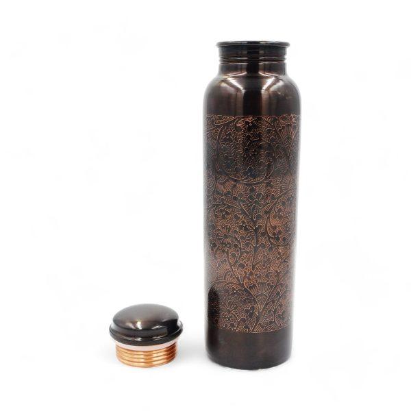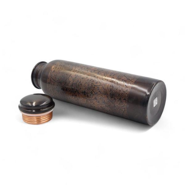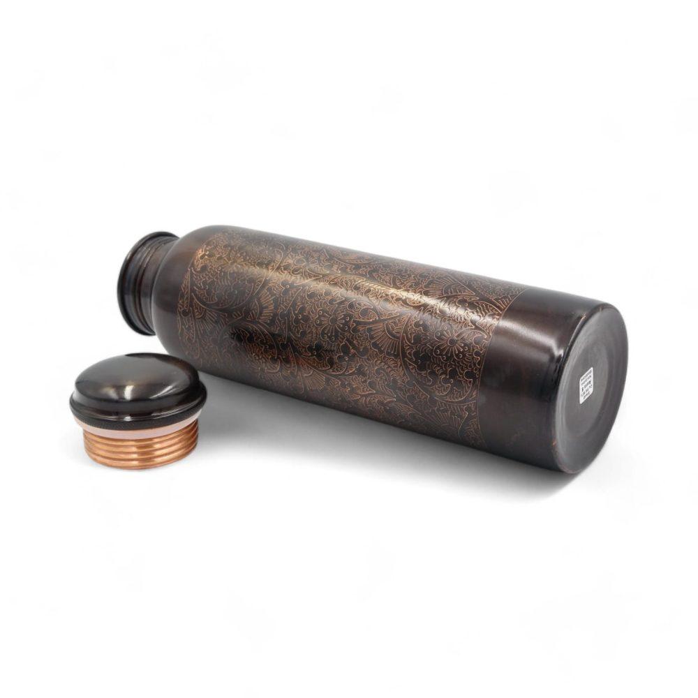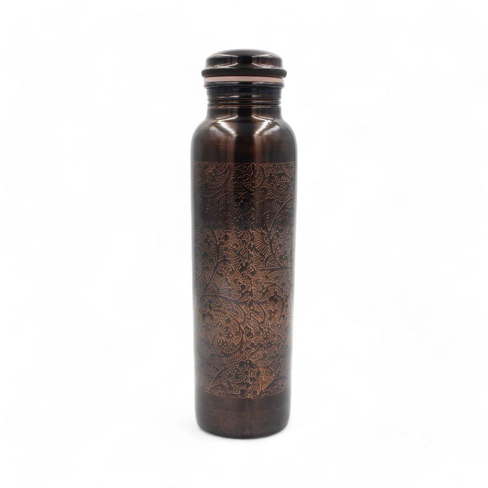 Kurzbeschreibung: Handgefertigte Kupferflasche mit edler Gravur und spezieller Nanobeschichtung gegen Anlaufen. Nutzt die natürlichen, hygienischen Eigenschaften des Kupfers – für vitalisierendes Trinkwasser nach ayurvedischer Tradition.