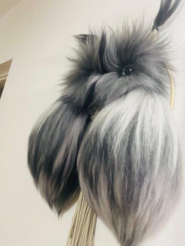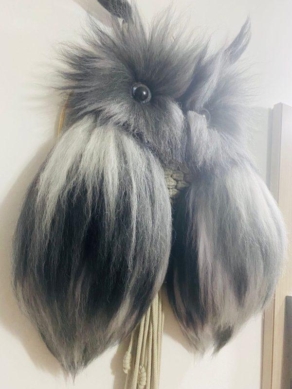 Durch die Kombination aus hochwertiger 5 mm Baumwollschnur und extra weicher Kammwolle entsteht eine beeindruckende 3D-Optik, die der Eule ein lebendiges, „flauschiges“ Aussehen verleiht.