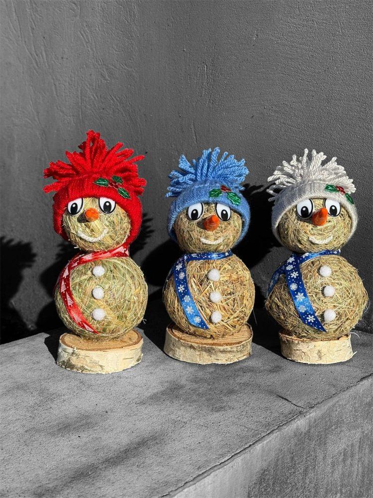 Niedliche, handgefertigte Heu-Schneemänner – die perfekte Weihnachtsdekoration!