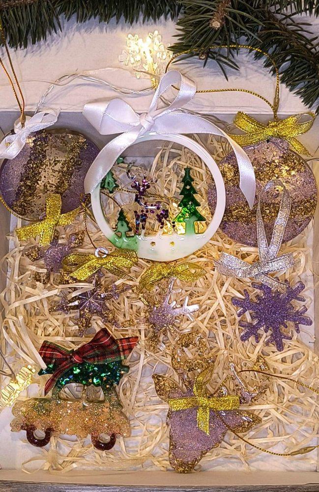 Set mit 9 handgefertigten Weihnachtsdekorationen aus Epoxidharz