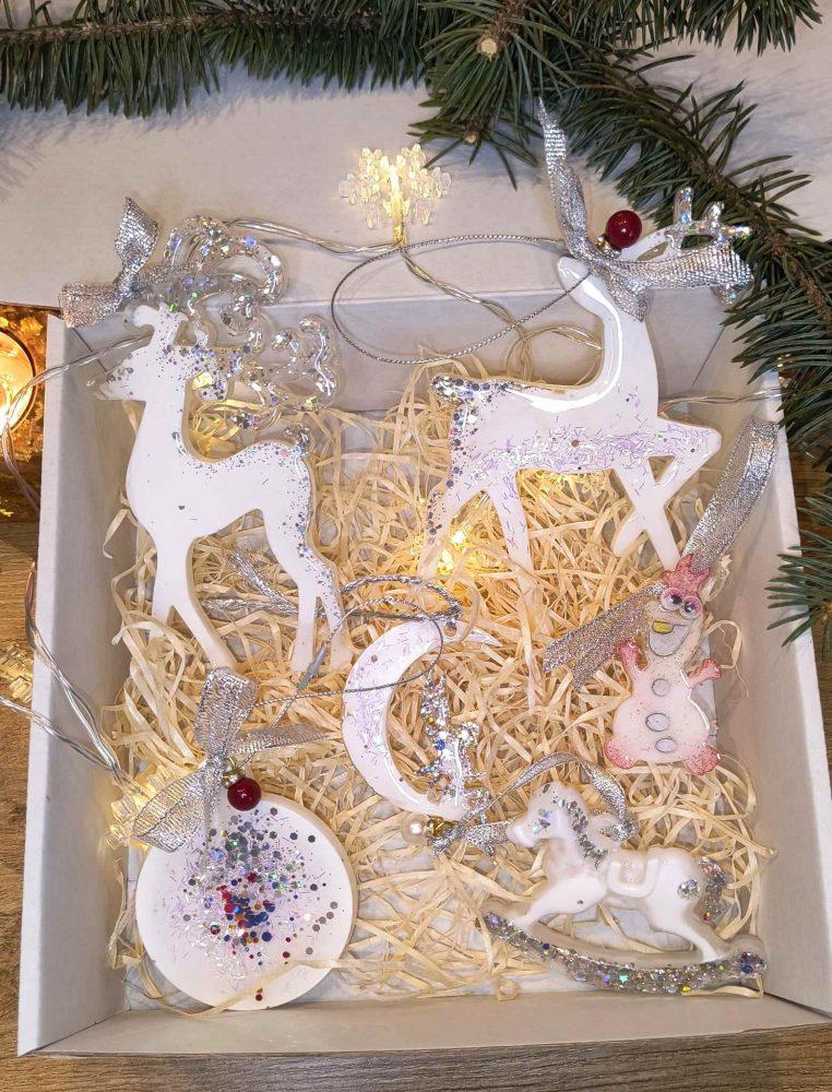 Set mit 6 handgefertigten Weihnachtsdekorationen aus Epoxidharz