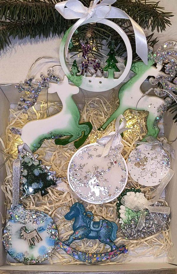 - Eine leere Kugel mit Rentier: Eine transparente, runde Kugel mit einer Rentierfigur im Inneren, die eine magische Winterszene schafft.